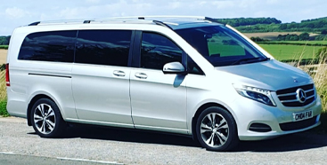 Spacious – Mercedes-Benz V-Class or similar. Luxury people carrier featuring full leather interiors, privacy/anti-glare glass, and conference-style seating with ample legroom.